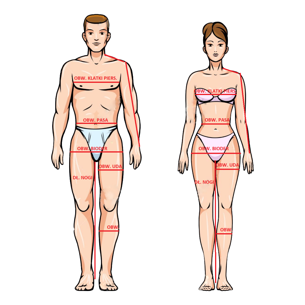 Dla wszystkich naszych produktów dostępne są modele w rozmiarach XS-XXL. W celu zamówienia specjalnego na wymiar należy przesłać do nas wymiary według wzoru pomiarów.