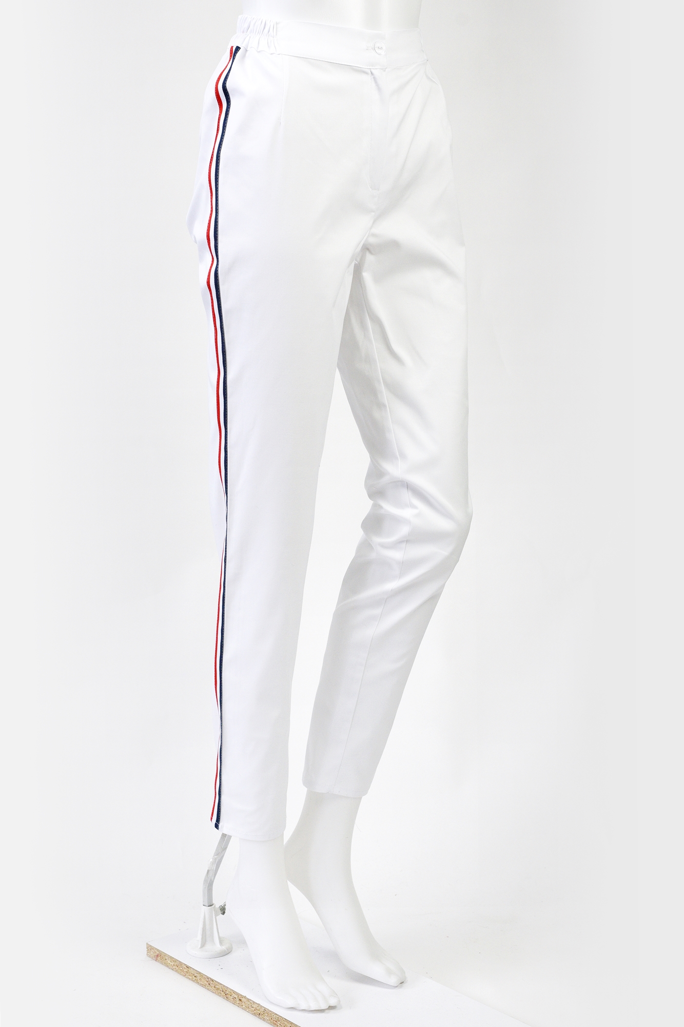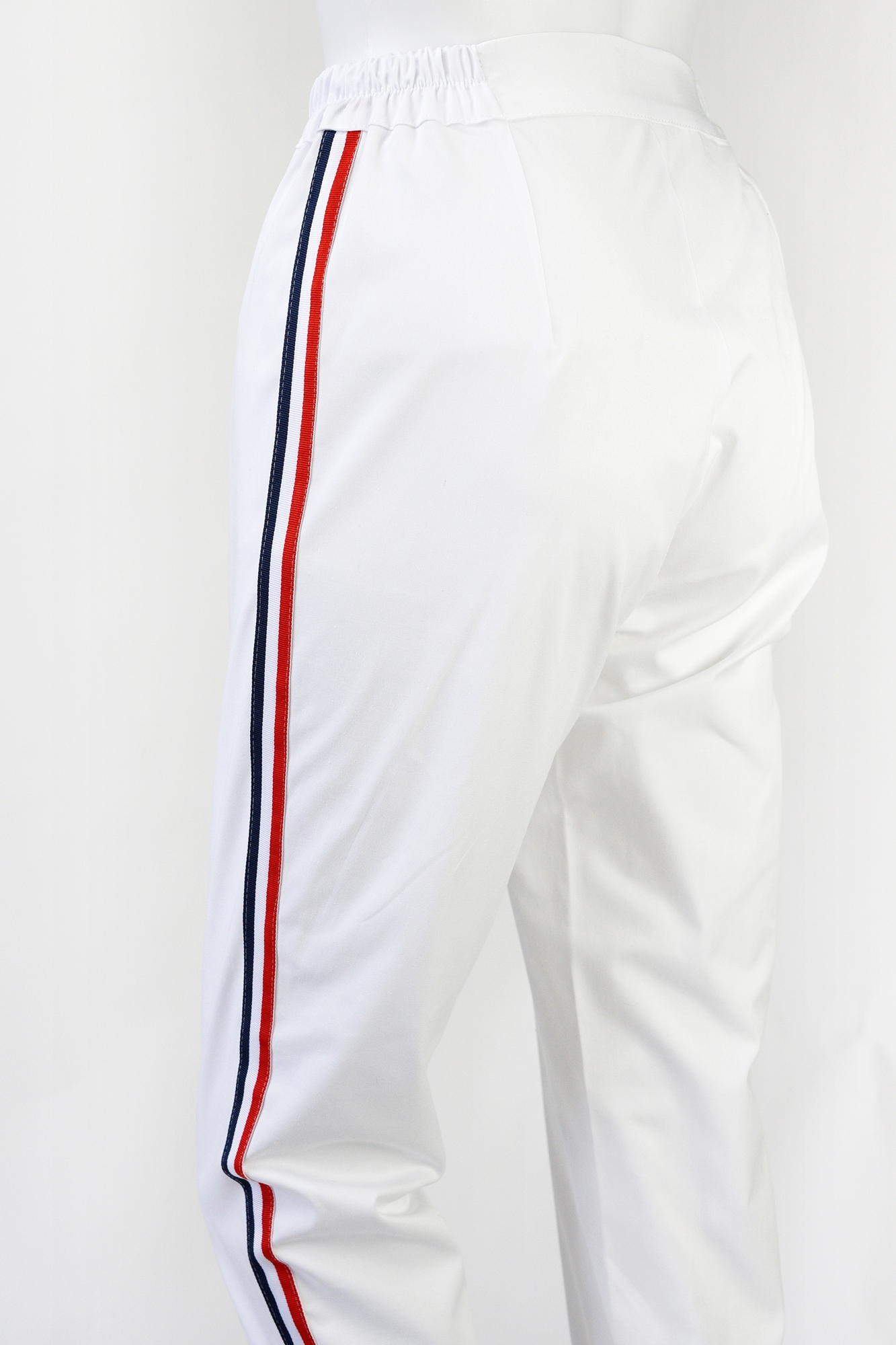 Ozdobą tych spodni są kolorowe lampasy, które dodają im charakteru i oryginalności, nadając im wyjątkowego uroku. Dzięki temu detalowi, te spodnie stanowią doskonały element garderoby dla kobiet, które cenią sobie indywidualny styl i chcą wyróżniać się z tłumu.