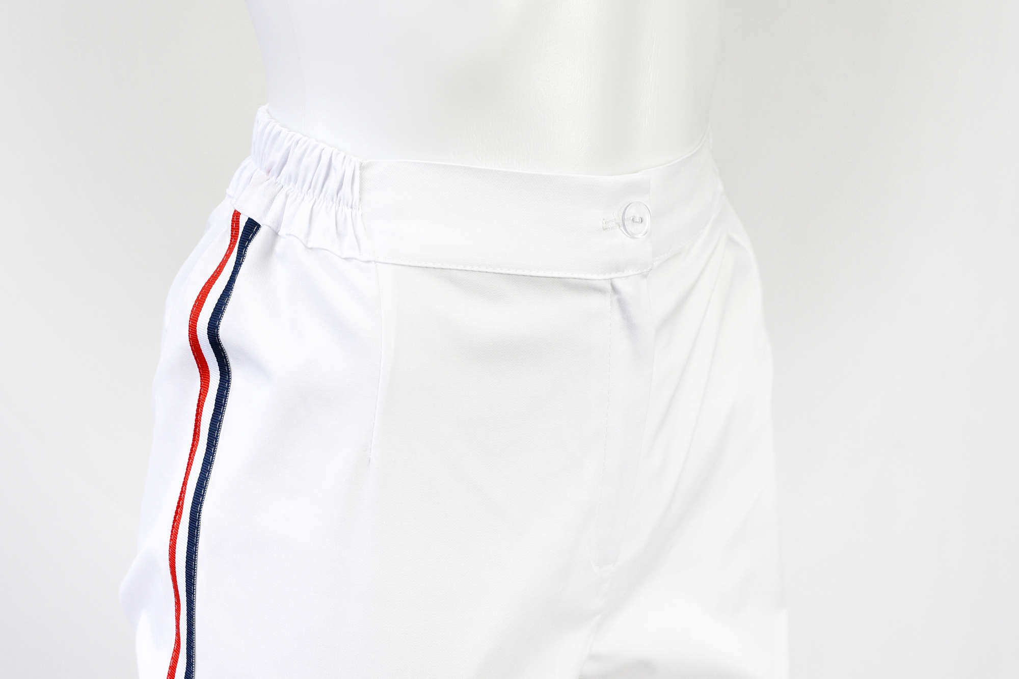 Spodnie zapinane na zamek oraz elastyczne gumki w pasku gwarantują łatwe dopasowanie do sylwetki i zapewniają komfort noszenia przez cały dzień.