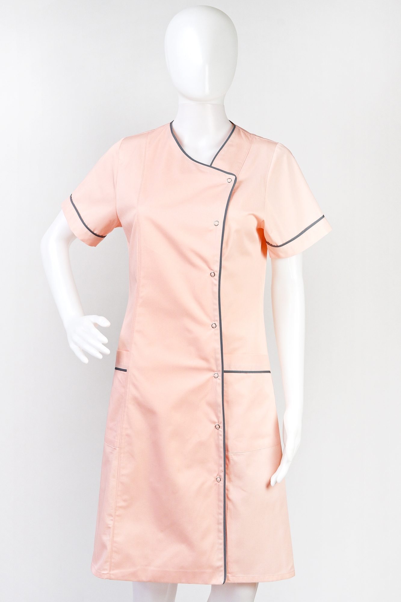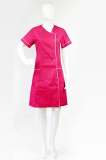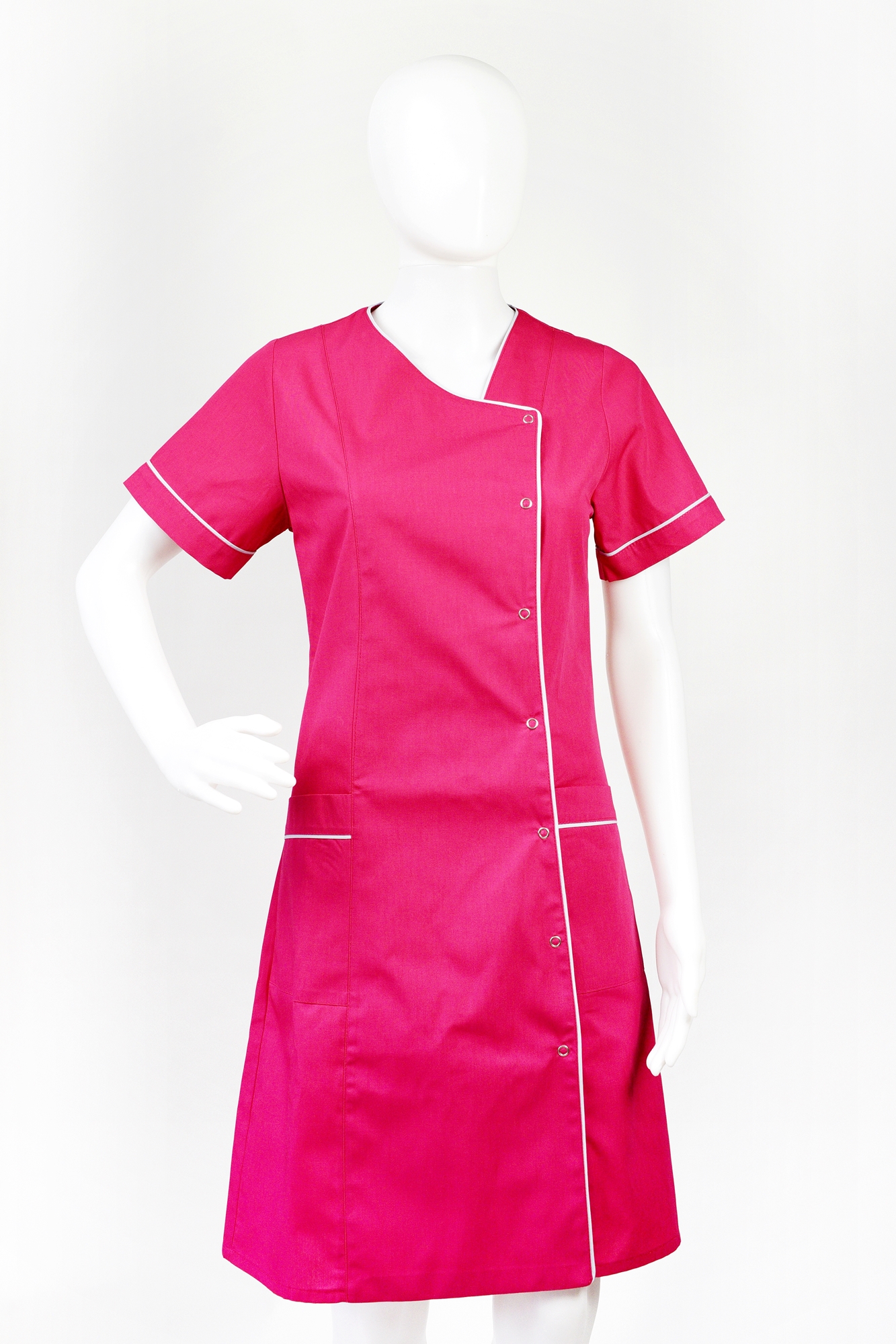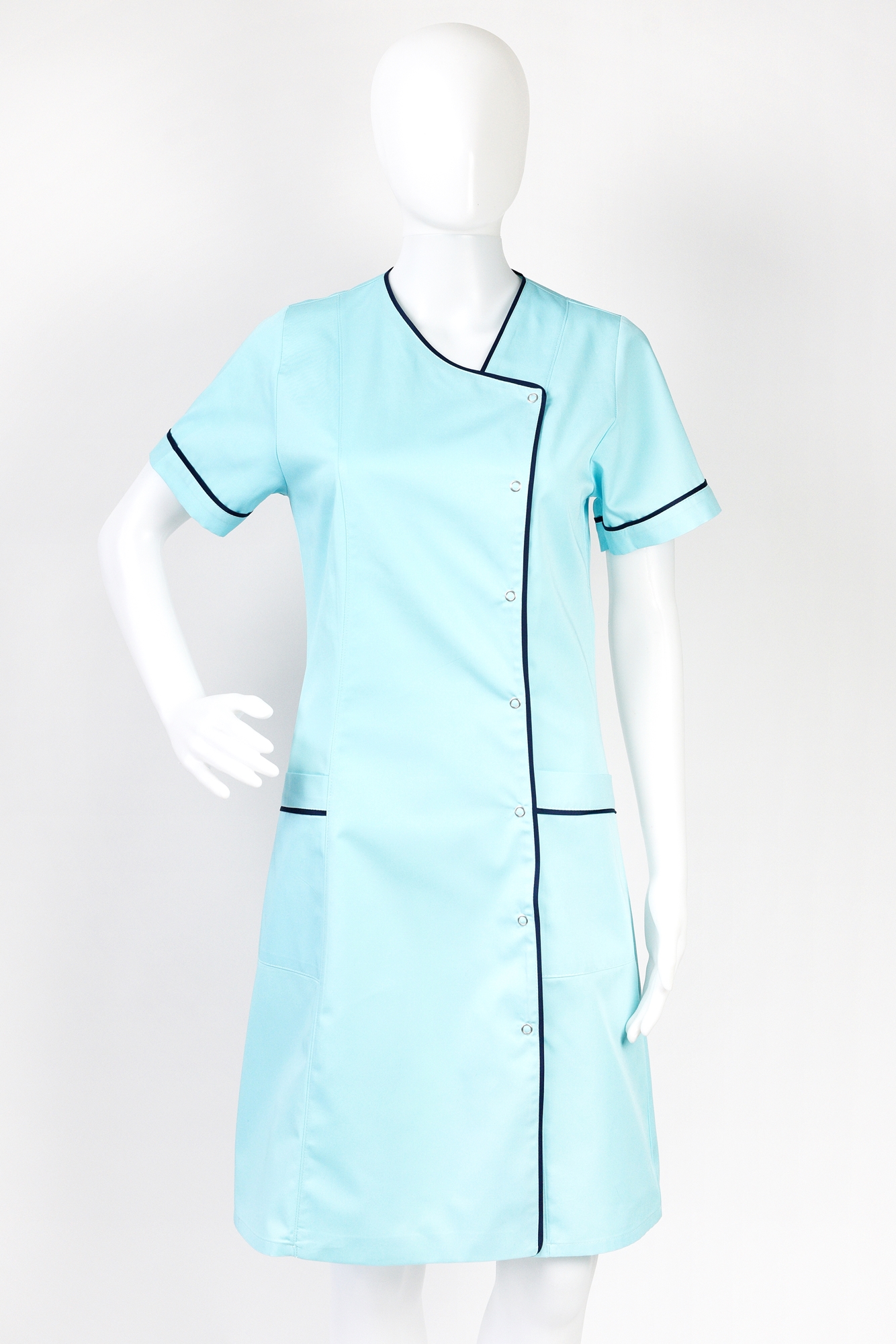 Jej krótki rękaw dodaje sukience lekkości i nadaje się doskonale na letnie dni. Asymetryczne zapinanie na napy nadaje jej unikalnego charakteru, podkreślając oryginalność designu.