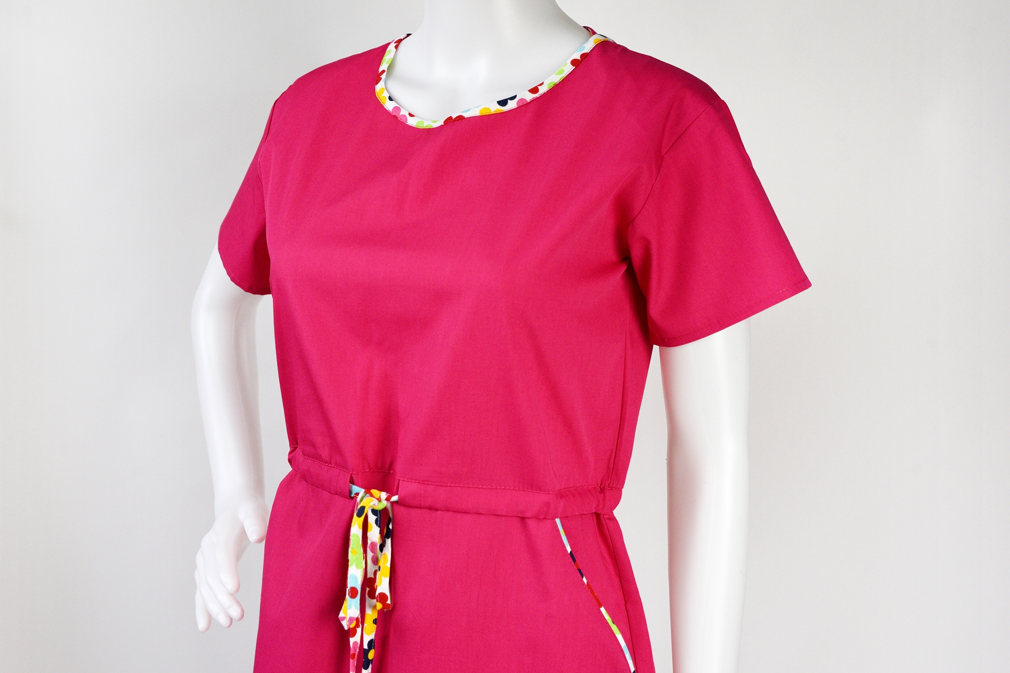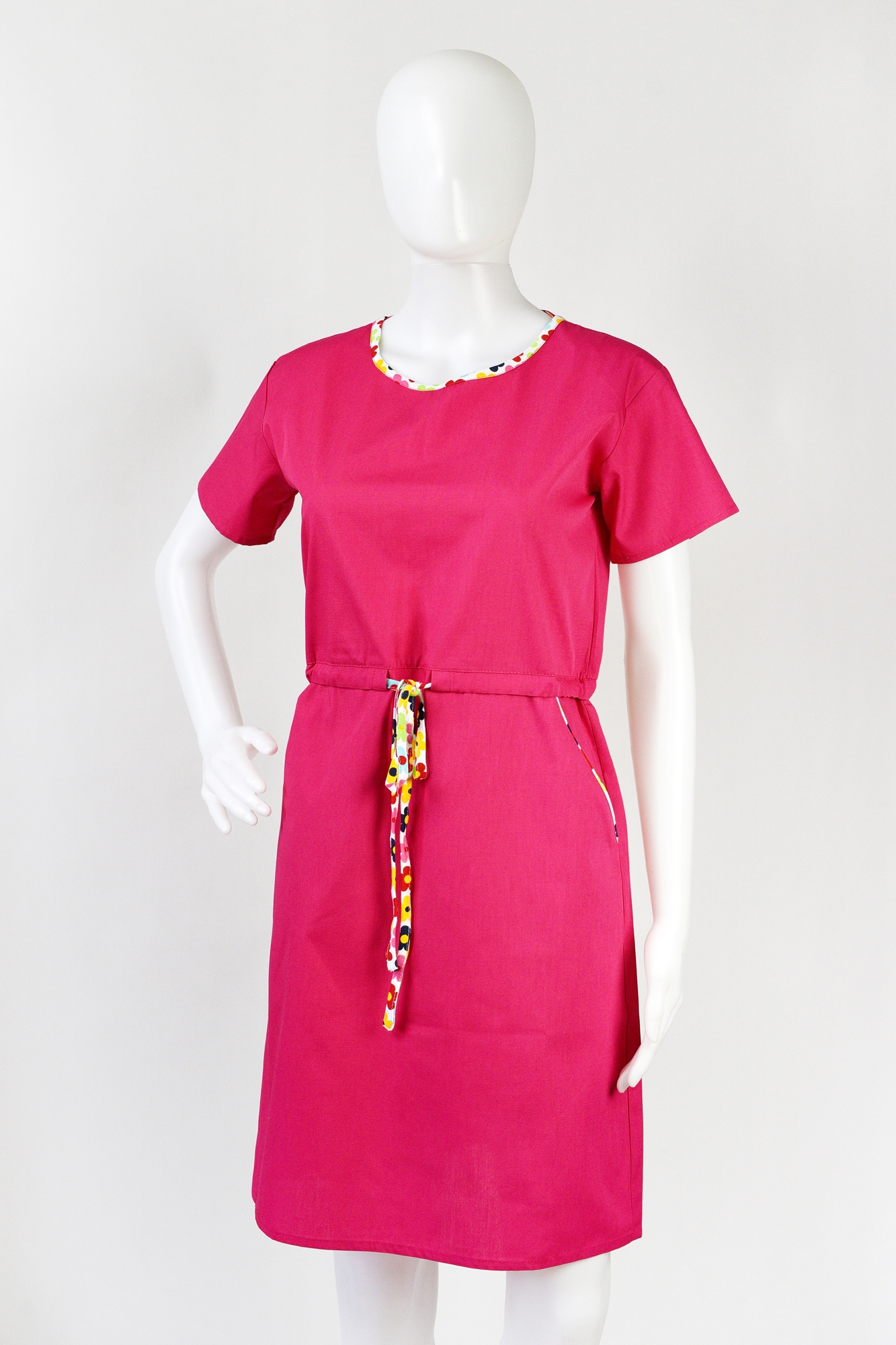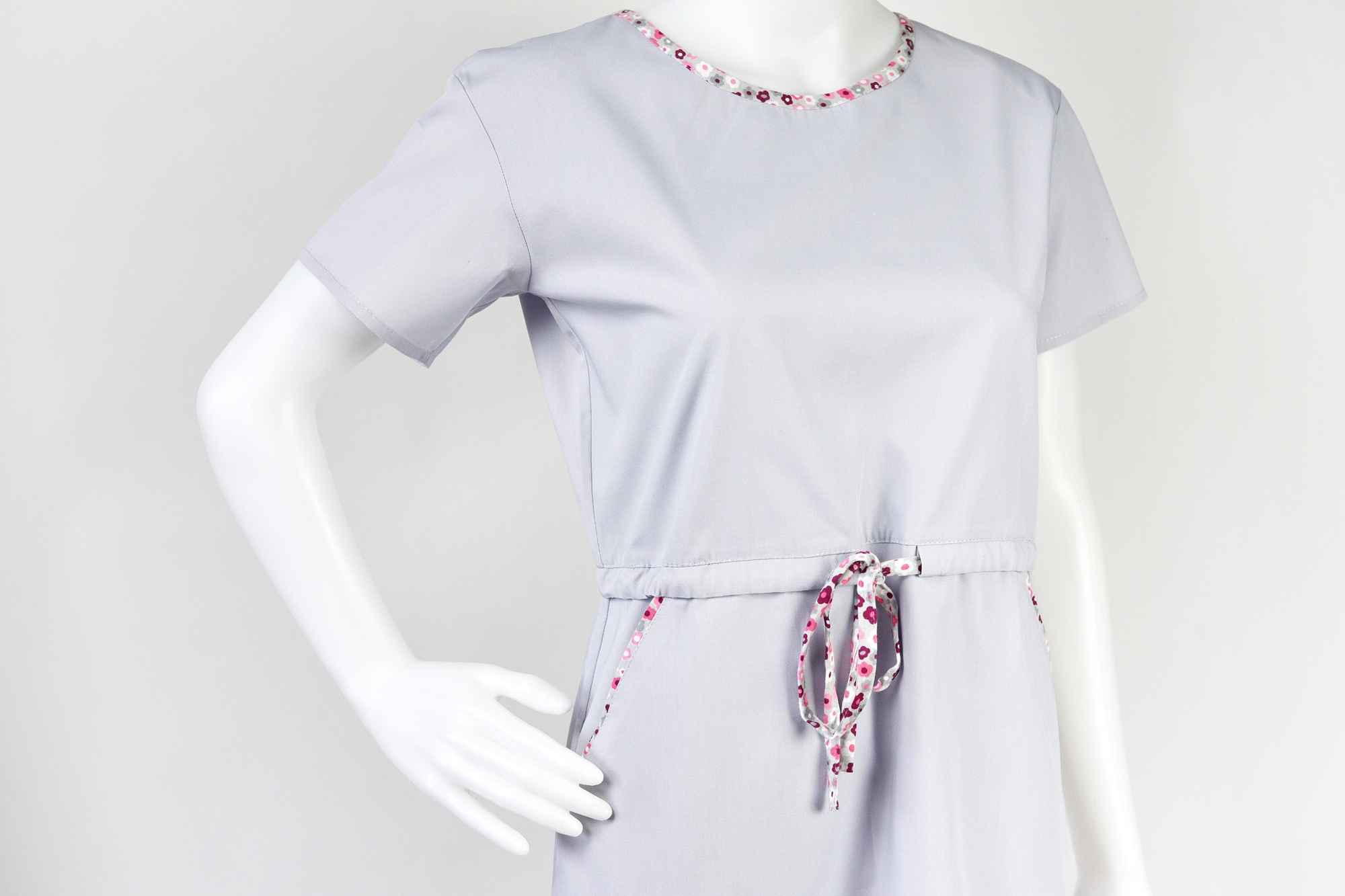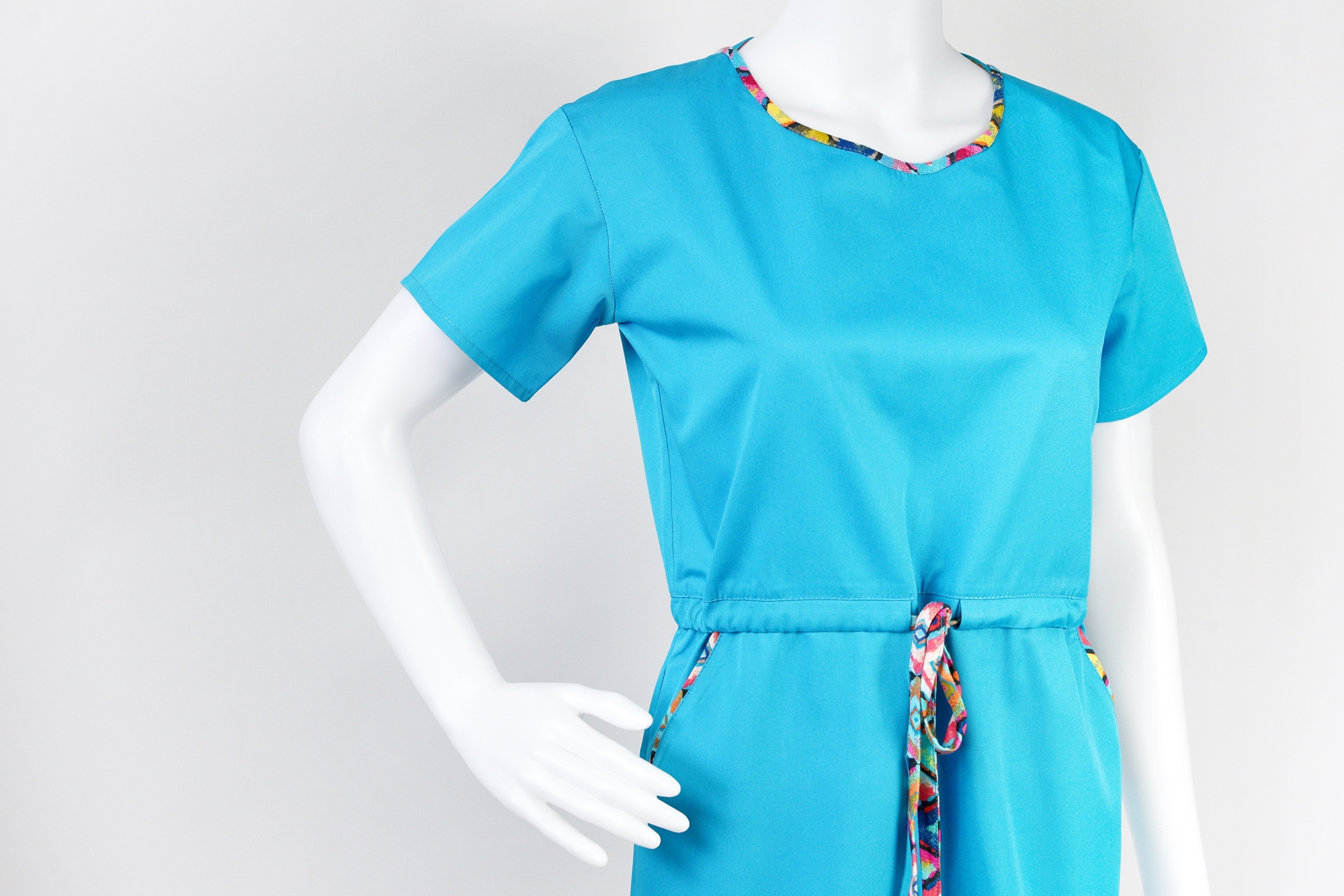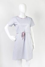 Jednak to, co wyróżnia tę sukienkę, to troczek zawiązywany w pasie, który nie tylko dodaje sukience subtelności i kobiecego uroku, ale także pozwala na dopasowanie do indywidualnych preferencji i sylwetki, podkreślając talię.