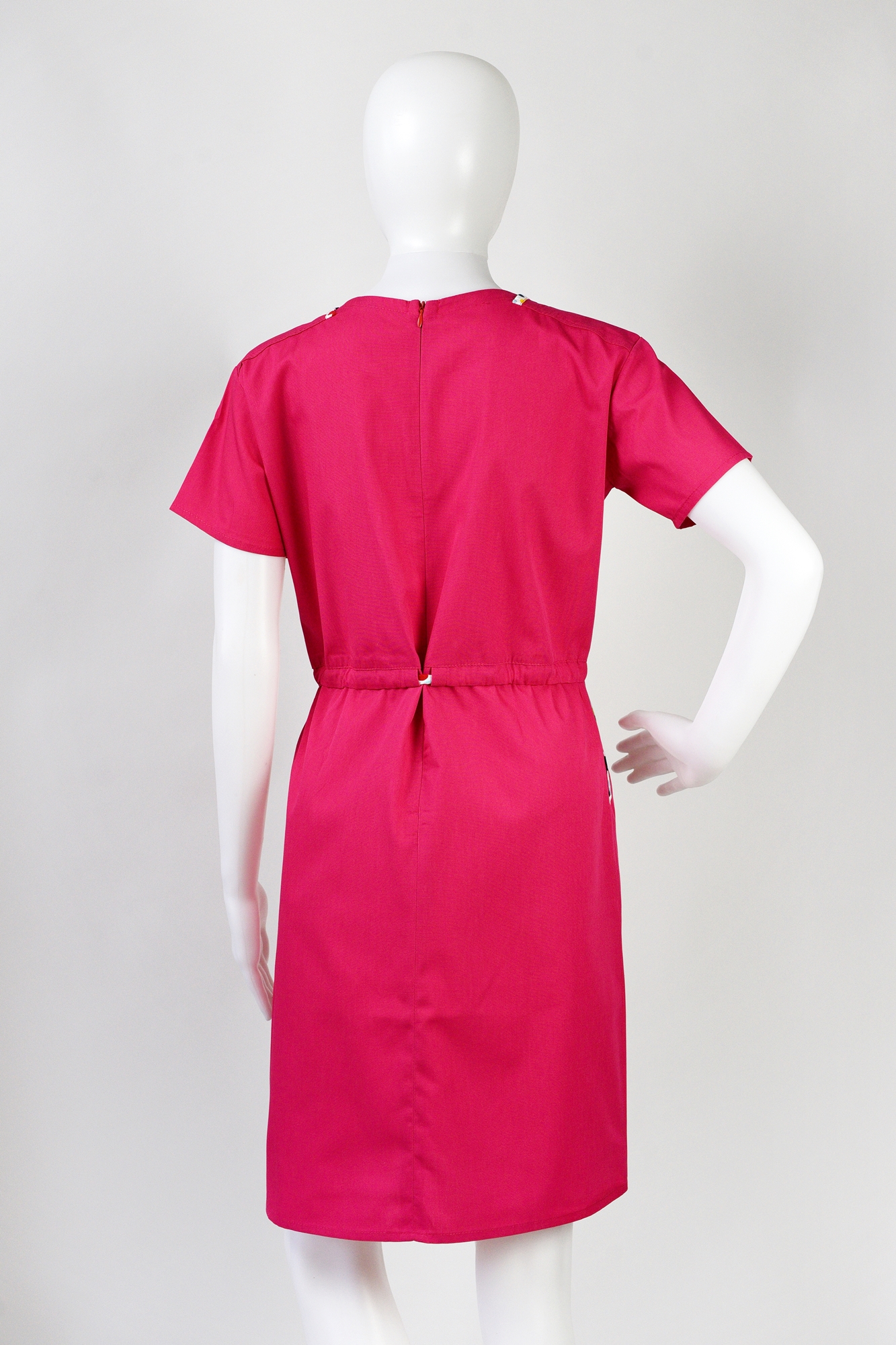 Sukienka posiada praktyczne wpuszczane kieszenie, które nie tylko dodają jej uroku, ale także są wygodnym miejscem do przechowywania drobiazgów. Zapinana z tyłu na zamek, gwarantuje łatwe zakładanie i idealne dopasowanie do sylwetki.